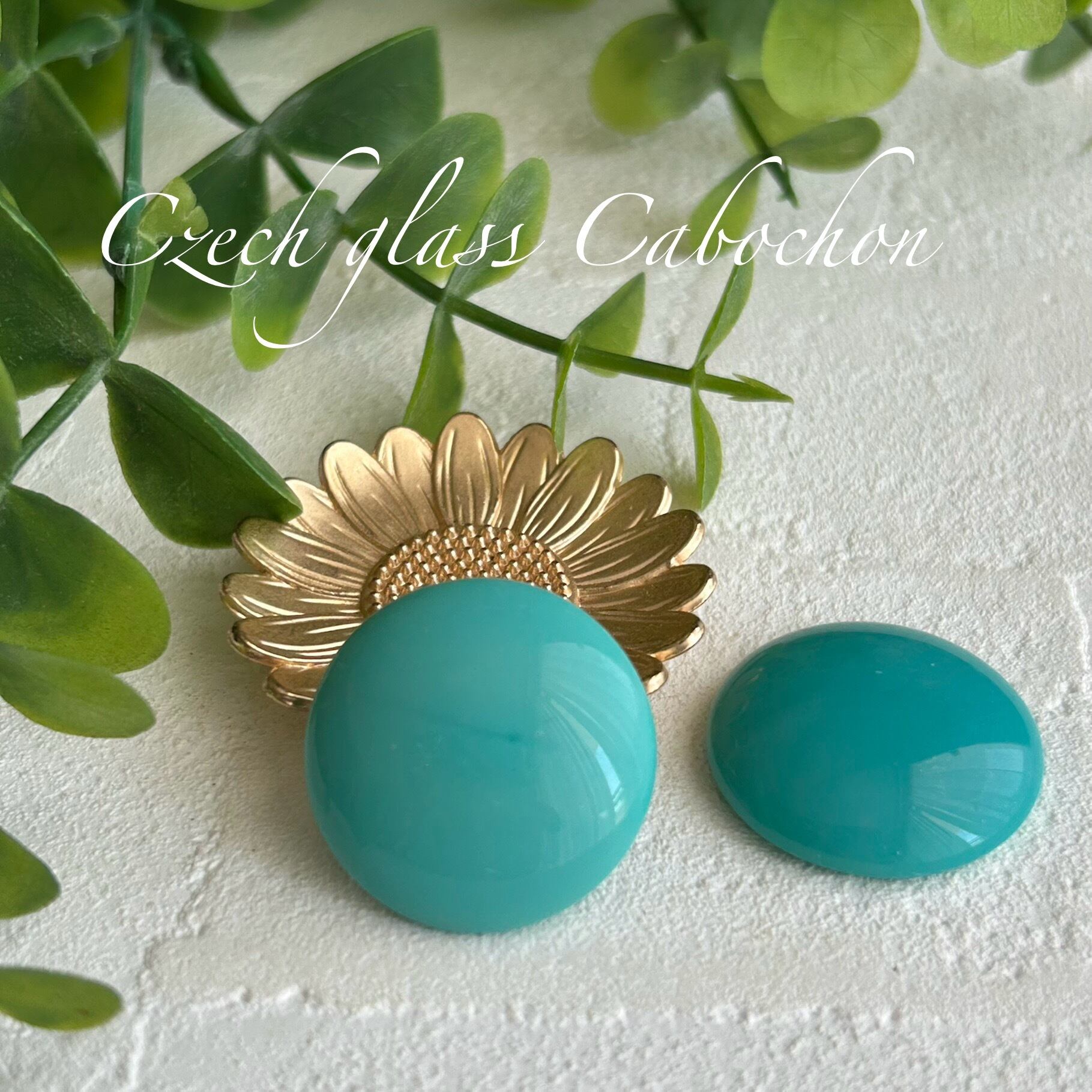 《1コ》ラウンドカボション25㎜ ターコイズ チェコガラス