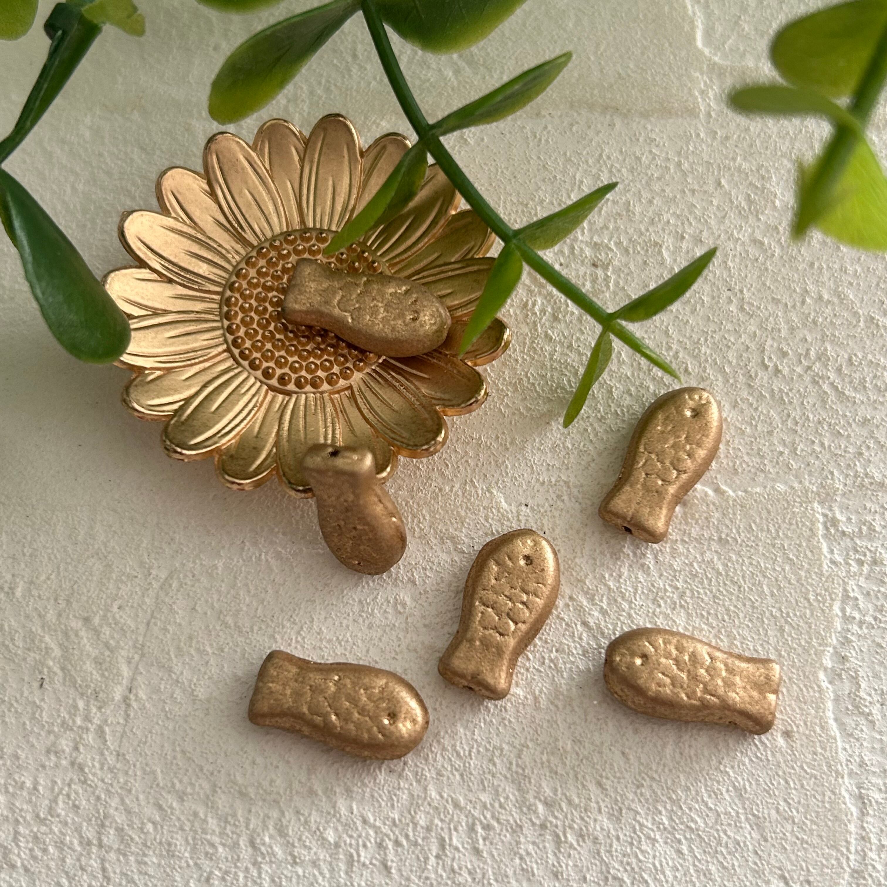 《6コ》フィッシュビーズ 14×7㎜ マットゴールド チェコビーズ