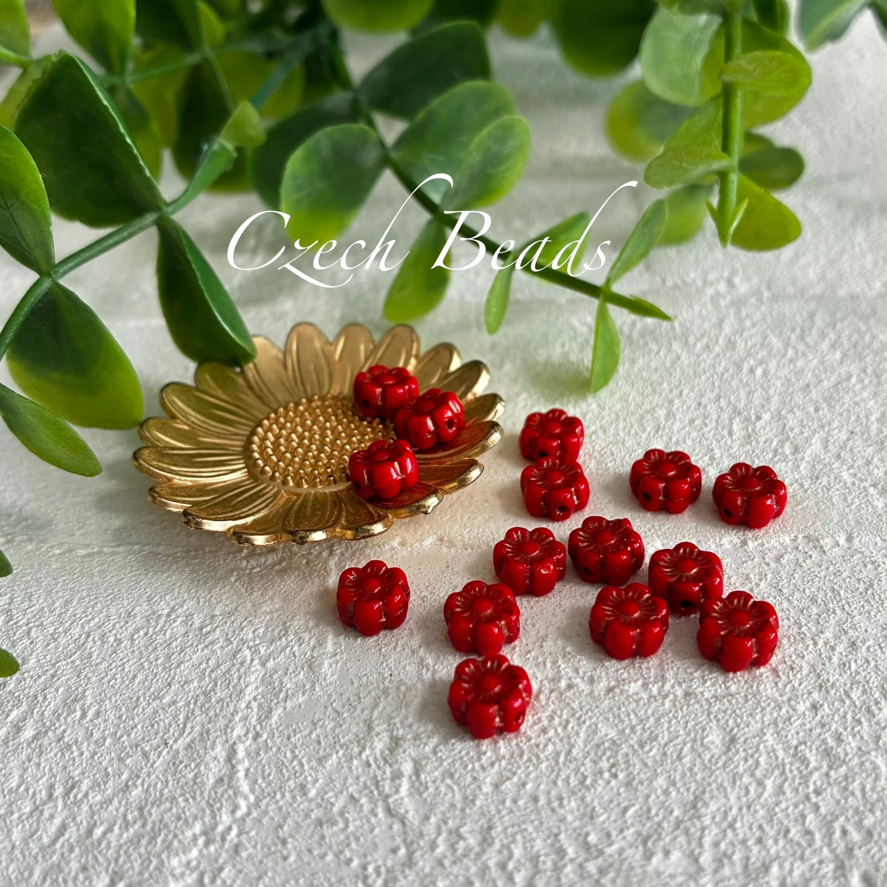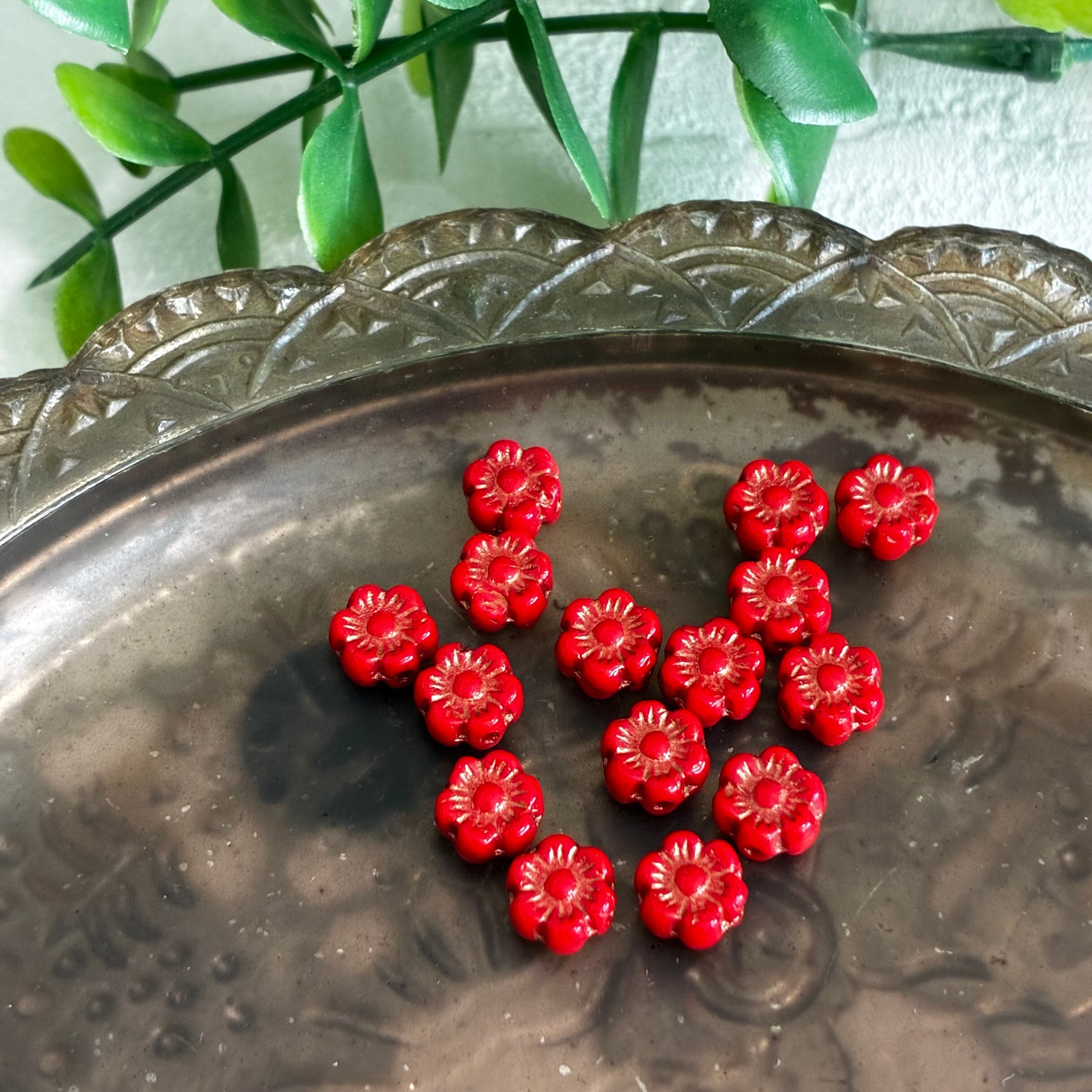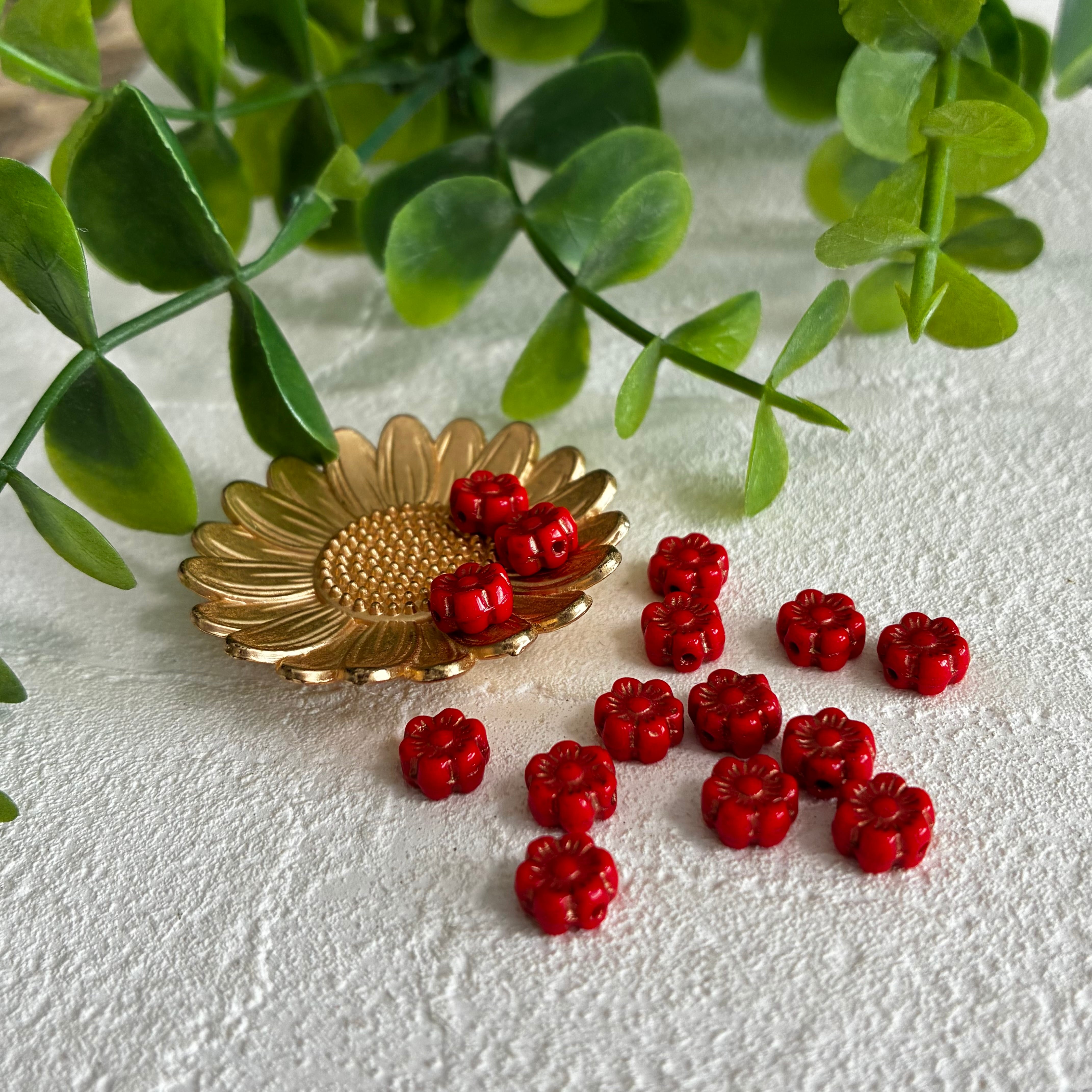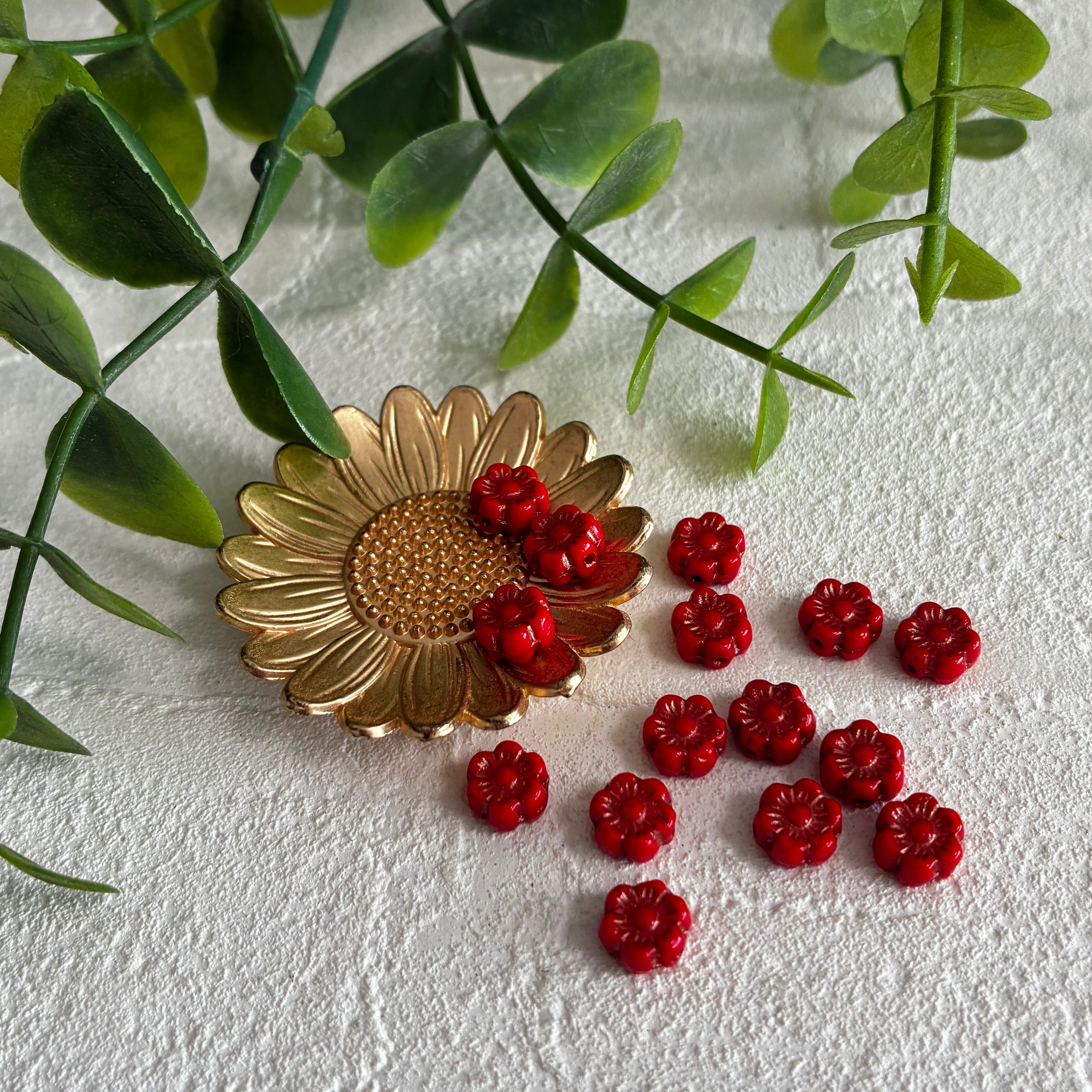 《15コ》ミニハイビスカス6㎜ レッド チェコビーズ