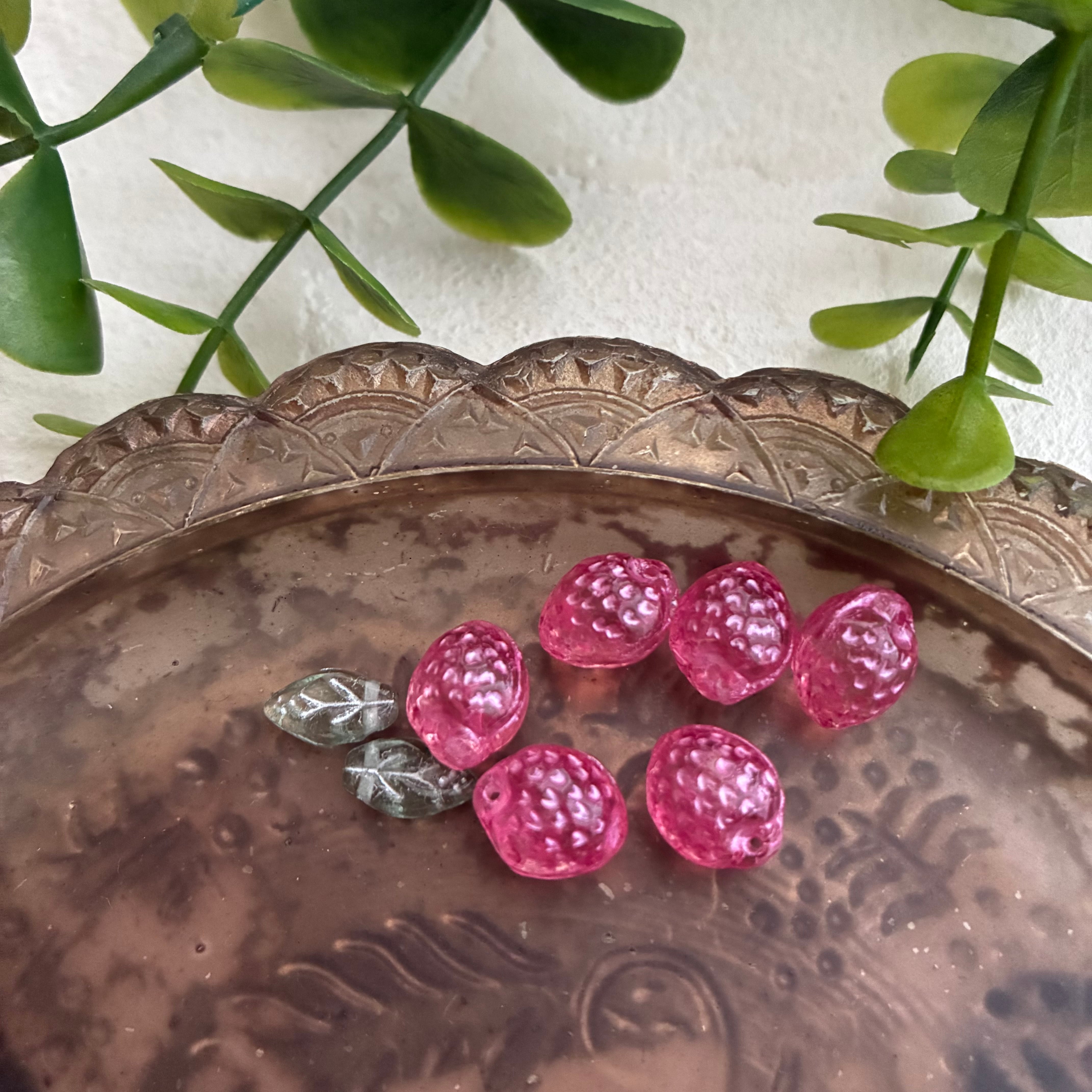 《6コ》いちごベリービーズ ピンク7×11㎜ チェコビーズ