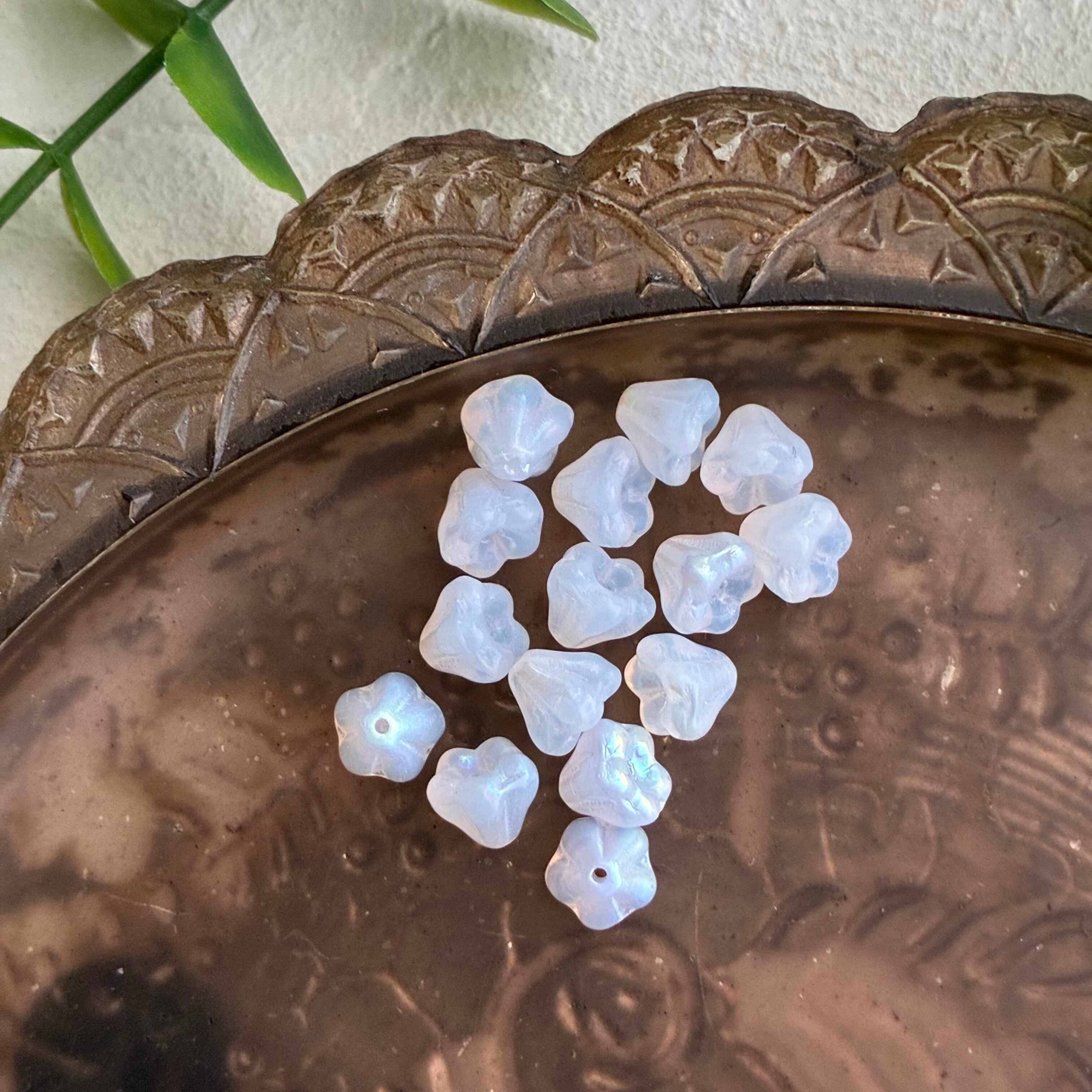 《15コ》ふんわりベルフラワー6㎜ ホワイトオパール チェコビーズ