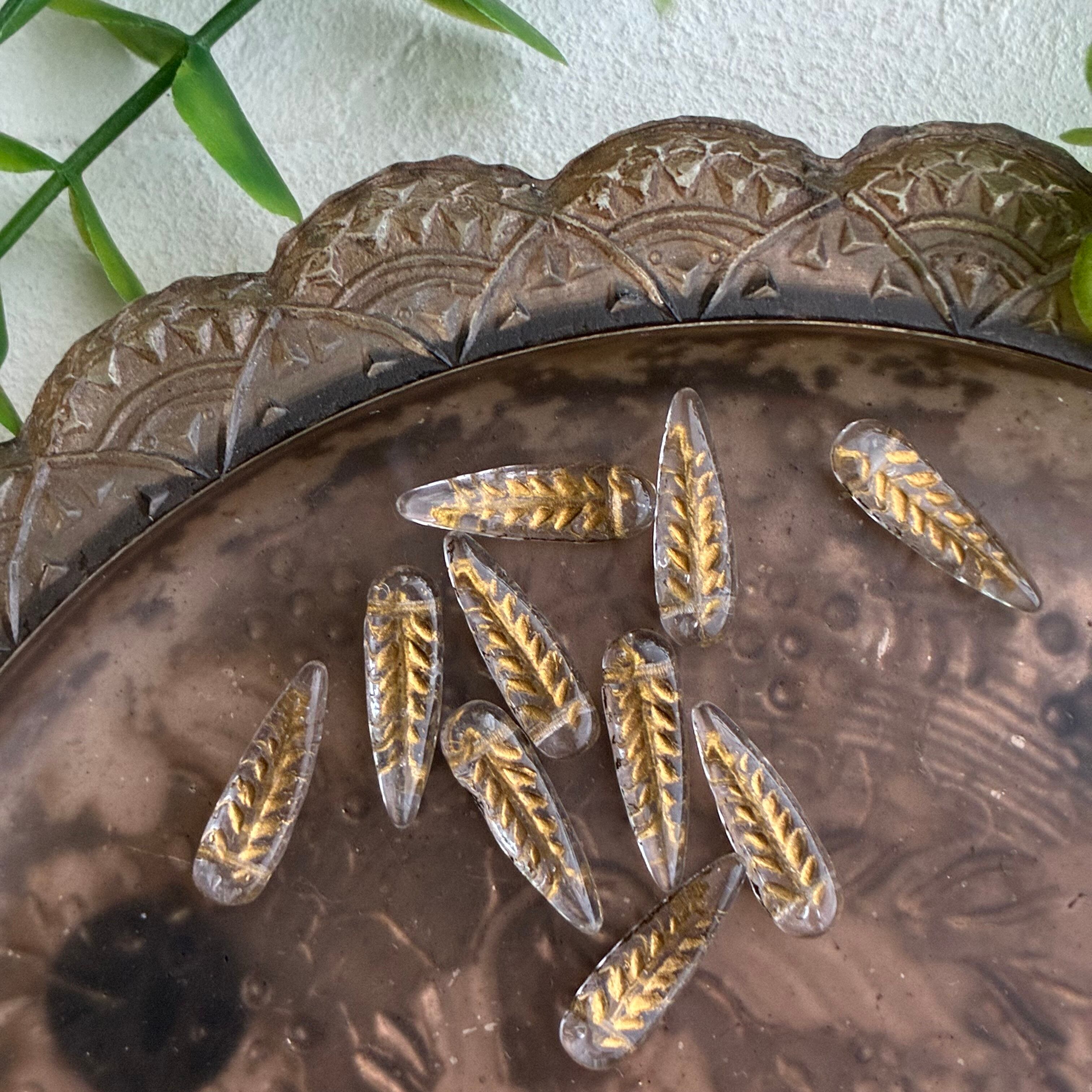 《10コ》フェザー羽ビーズ5×17㎜ クリスタル/g チェコビーズ