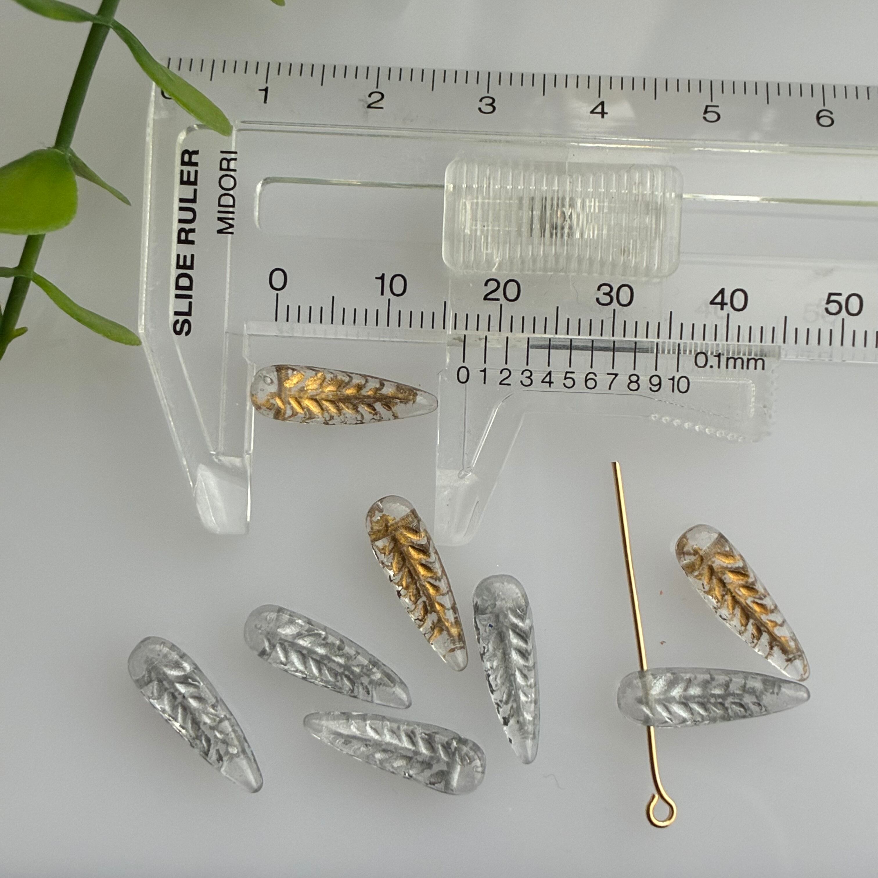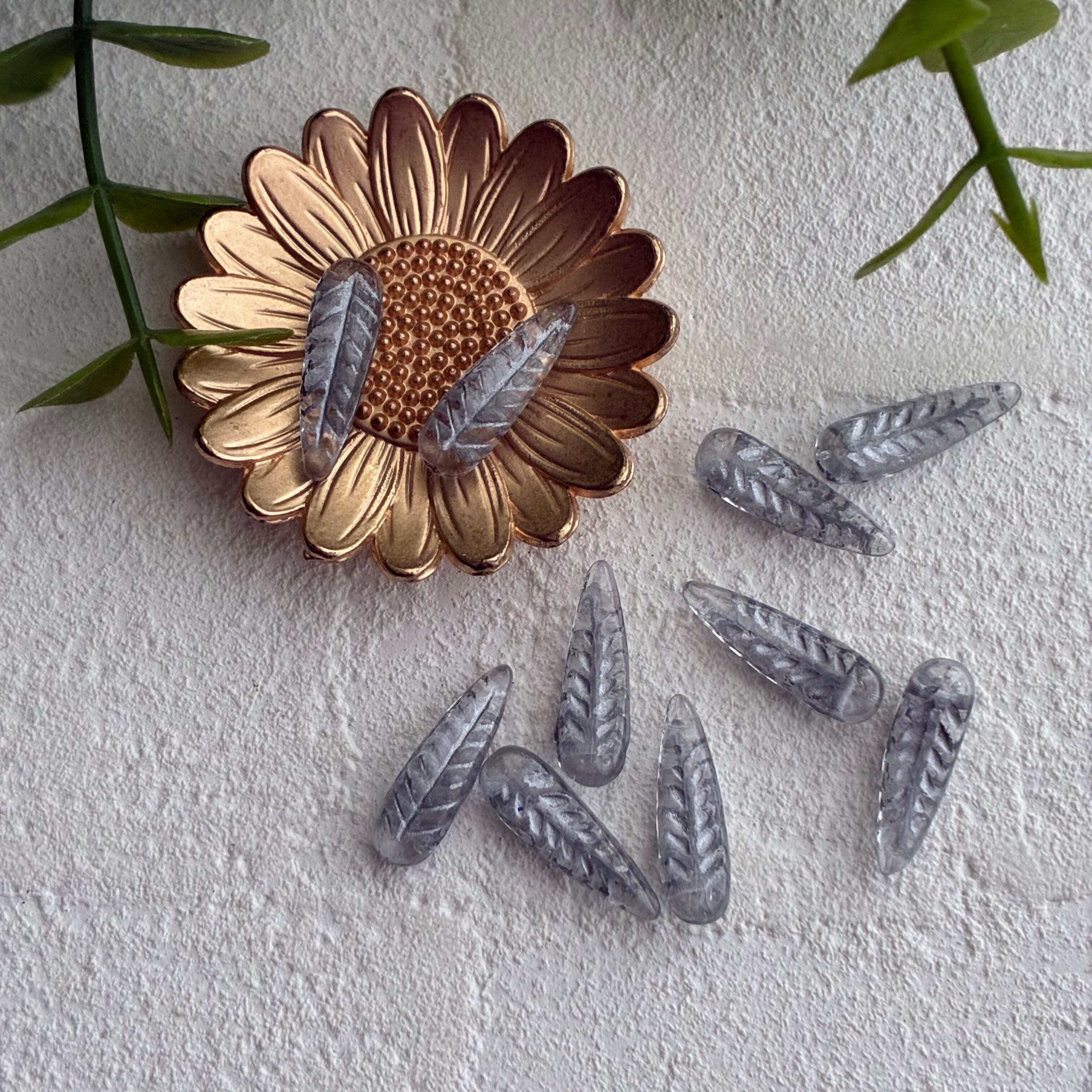 《10コ》フェザー羽5×17㎜ クリスタル/s チェコビーズ