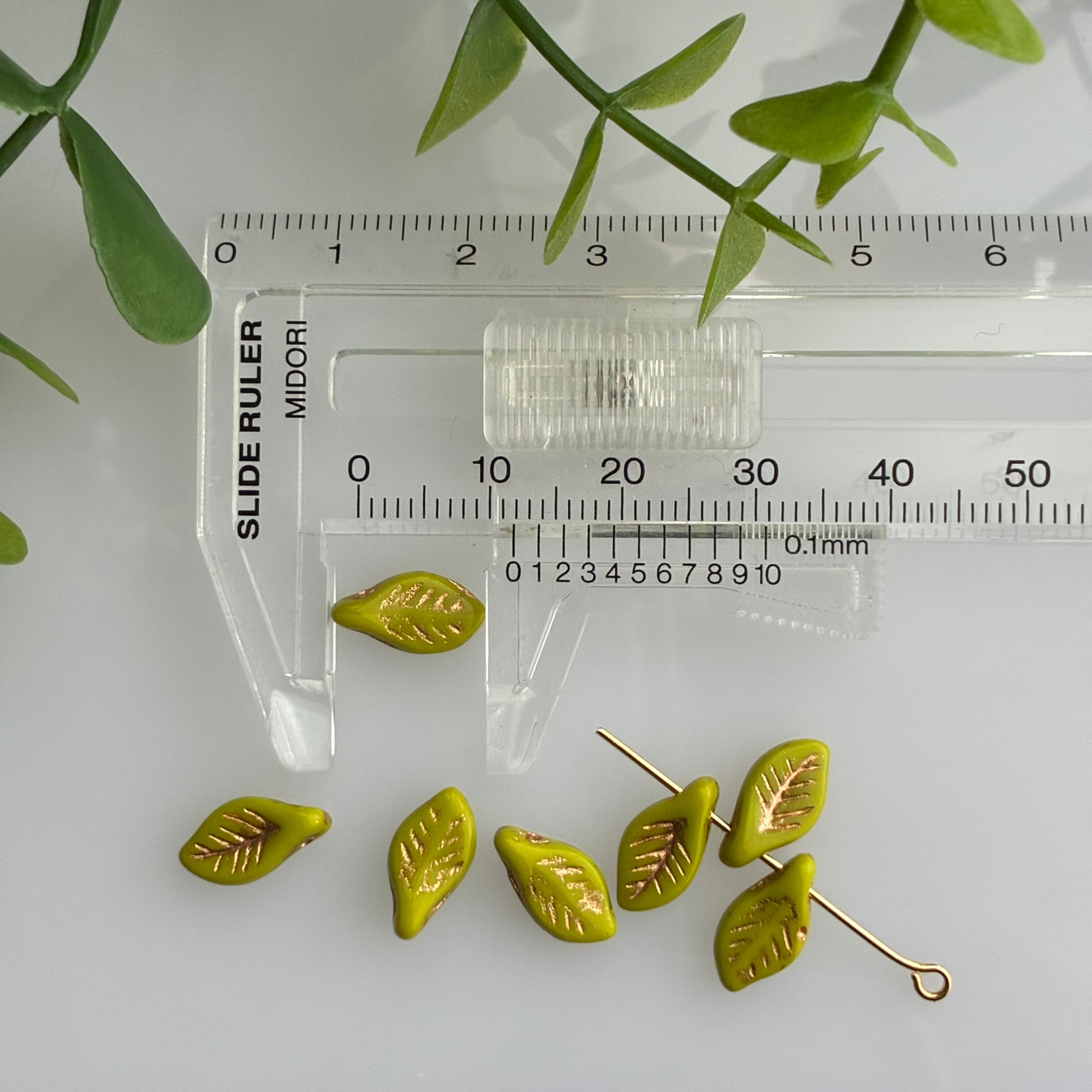 《12コ》ベイリーフ6×12㎜ ペールオリーブ チェコビーズ