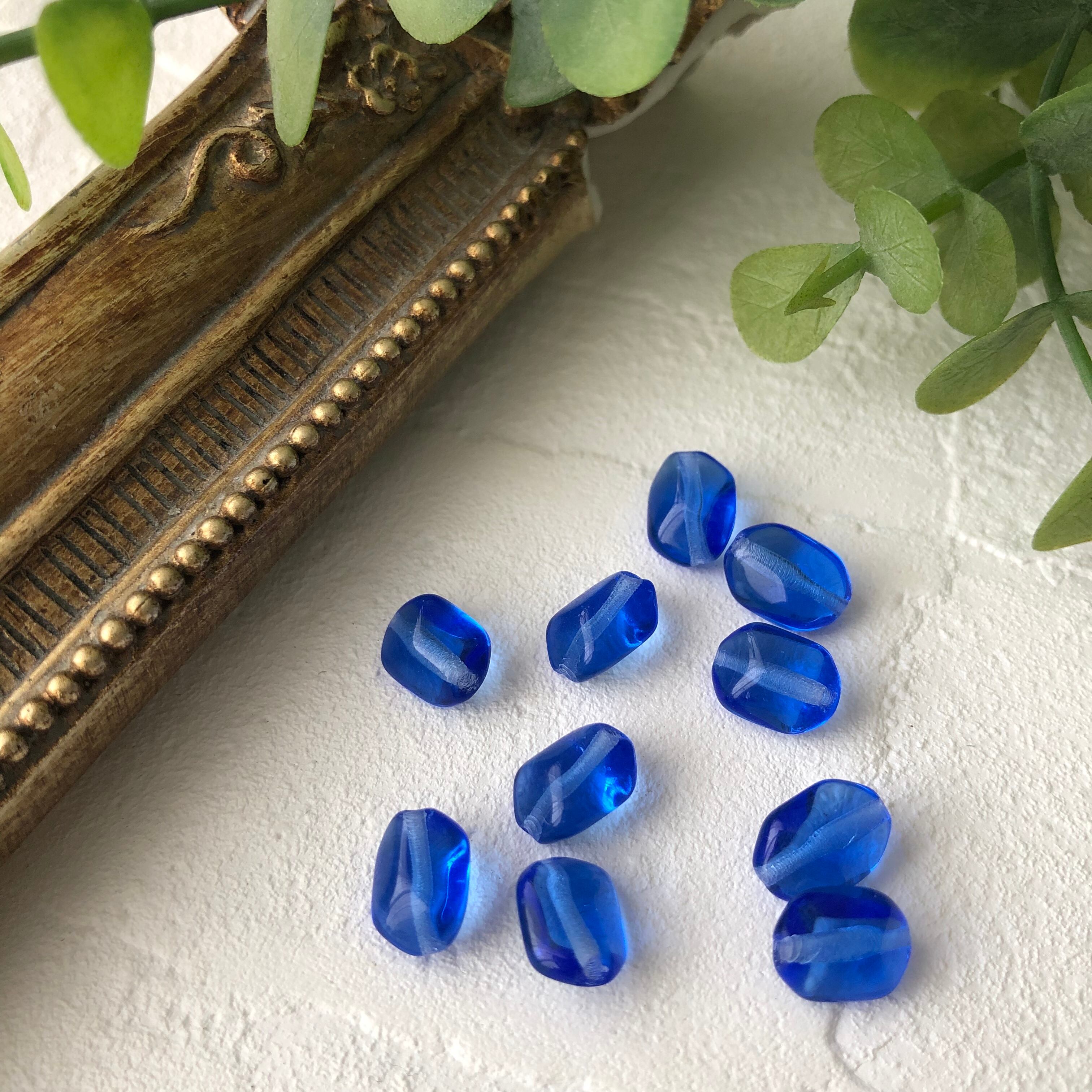 チェコビーズ オーバル変形9×6㎜ サファイア 10個