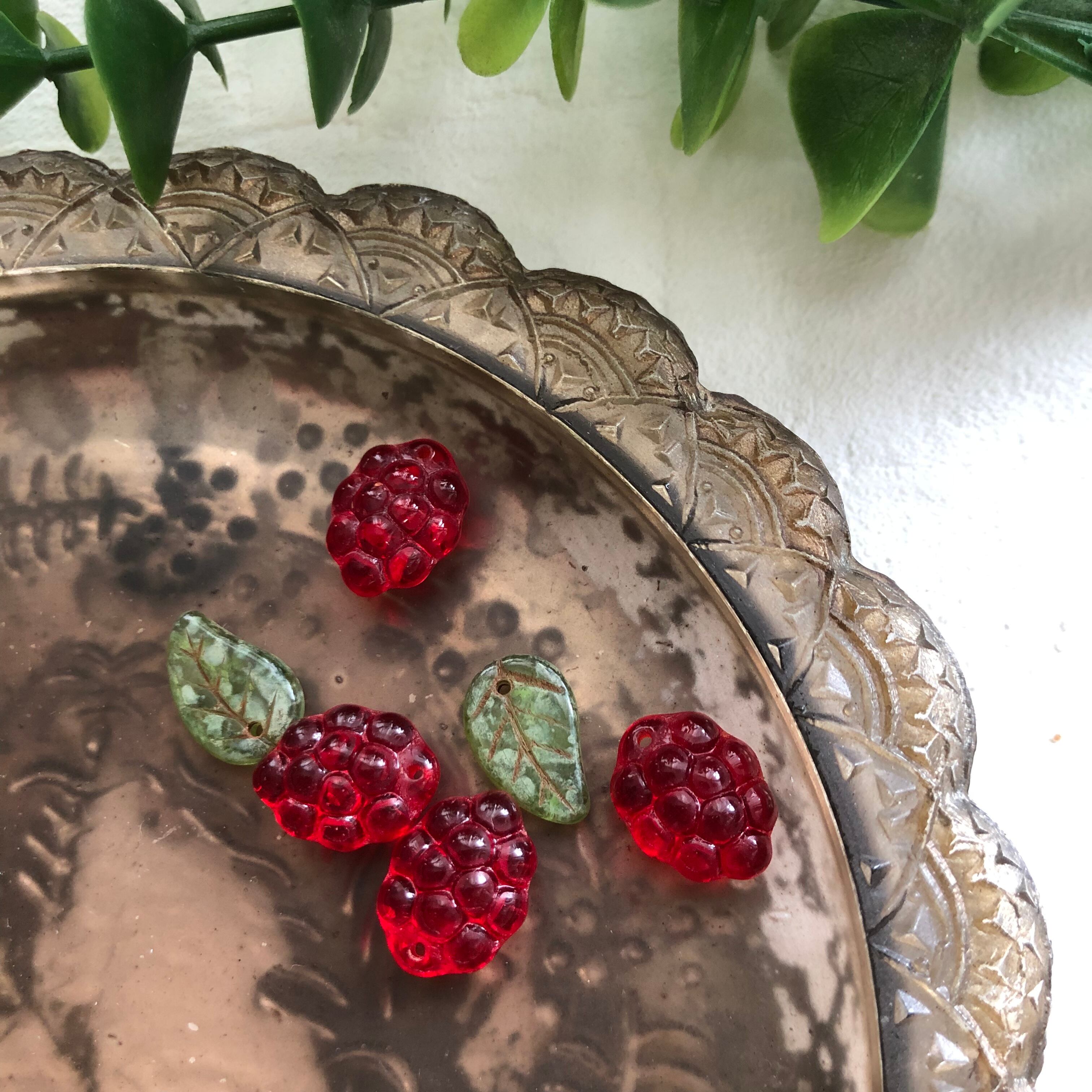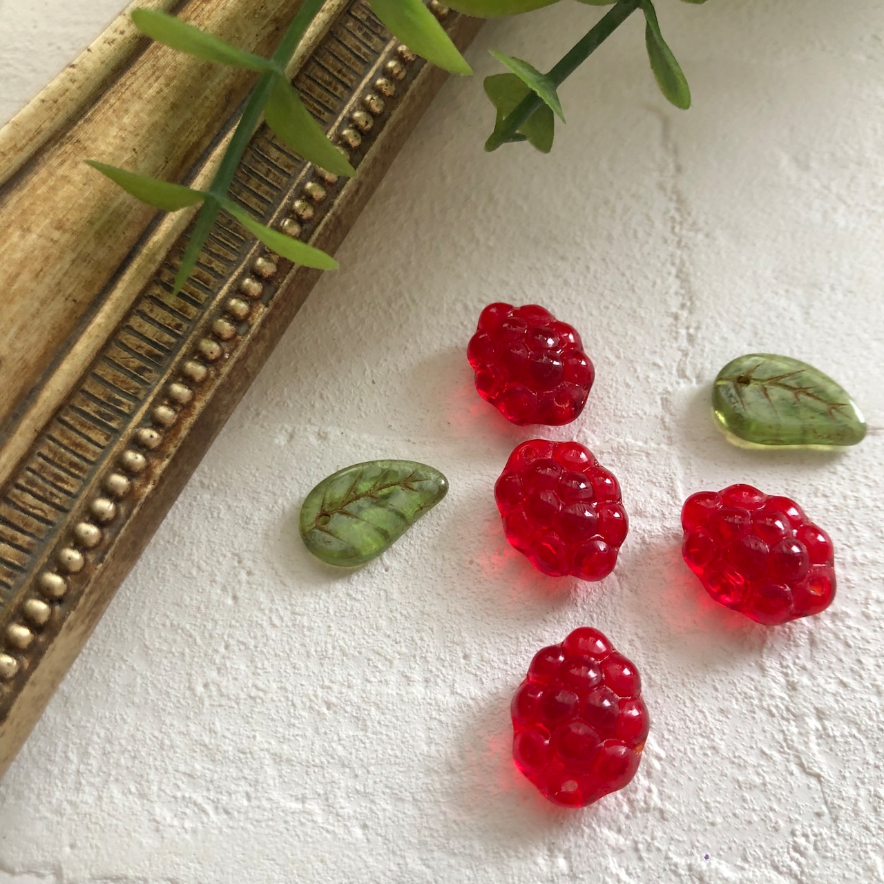 チェコビーズ フルーツシリーズ ラズベリー+リーフ 14×11㎜