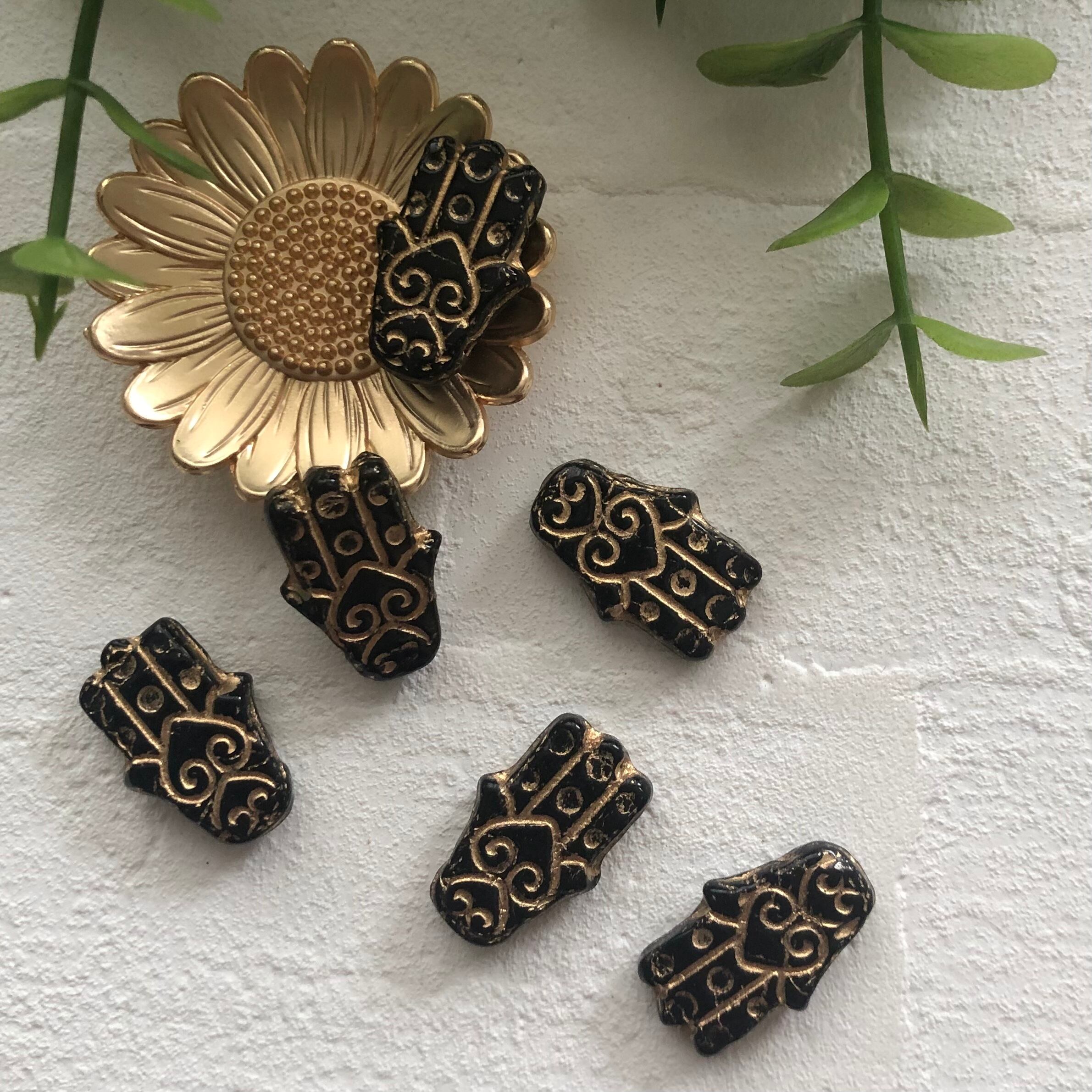 《2コ》ハムサの手 Jet/gold 20×14㎜ チェコビーズ